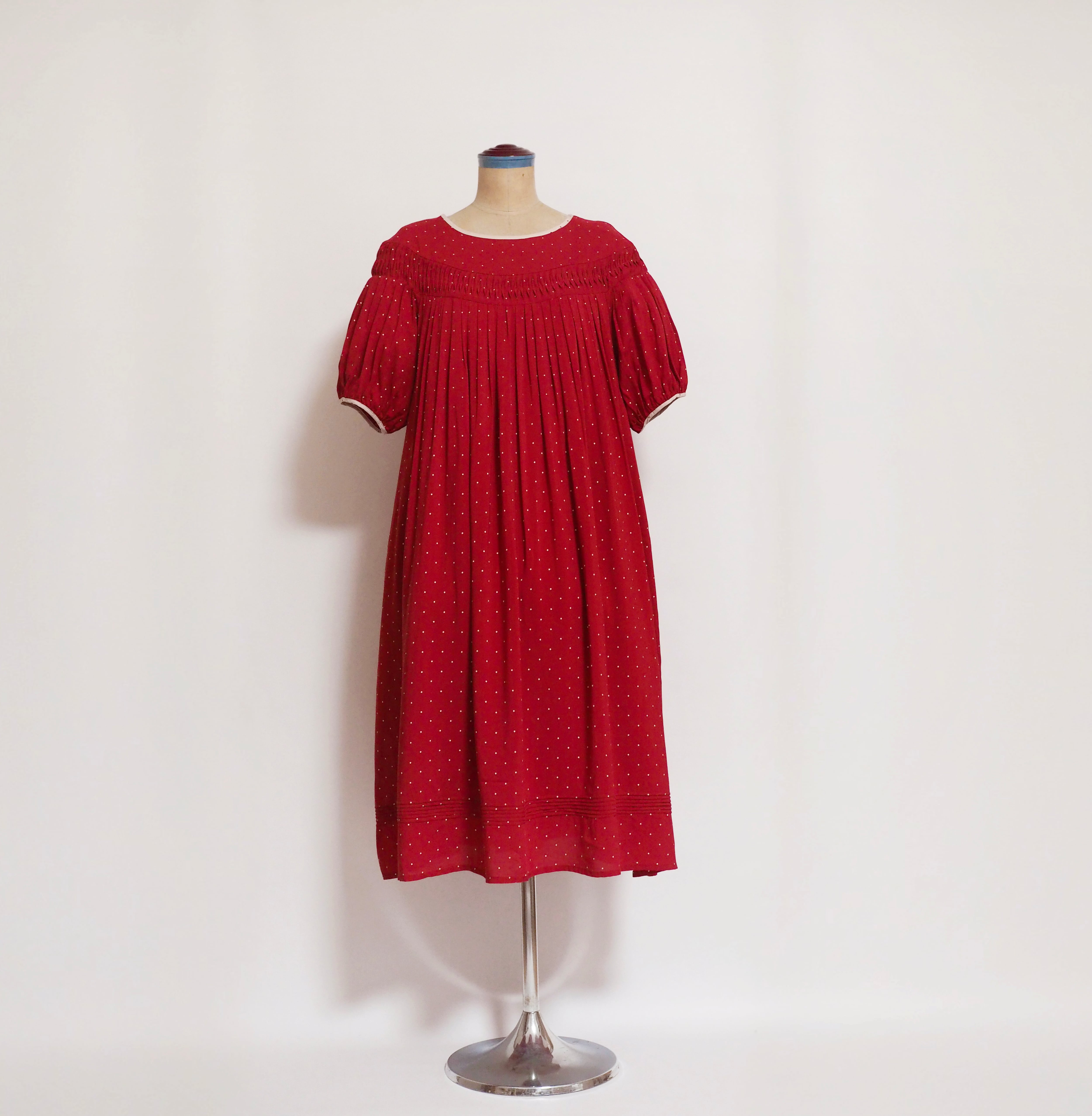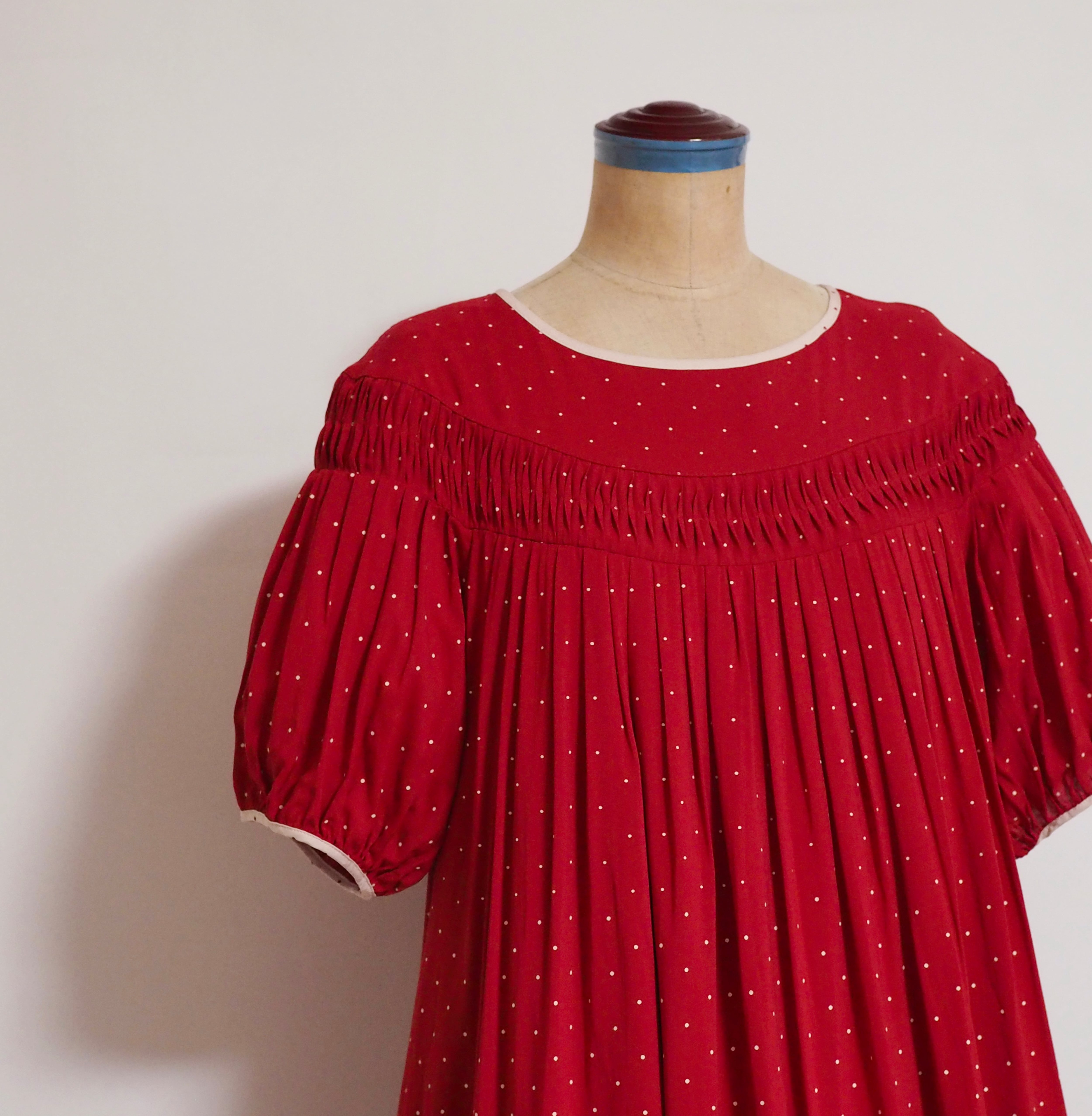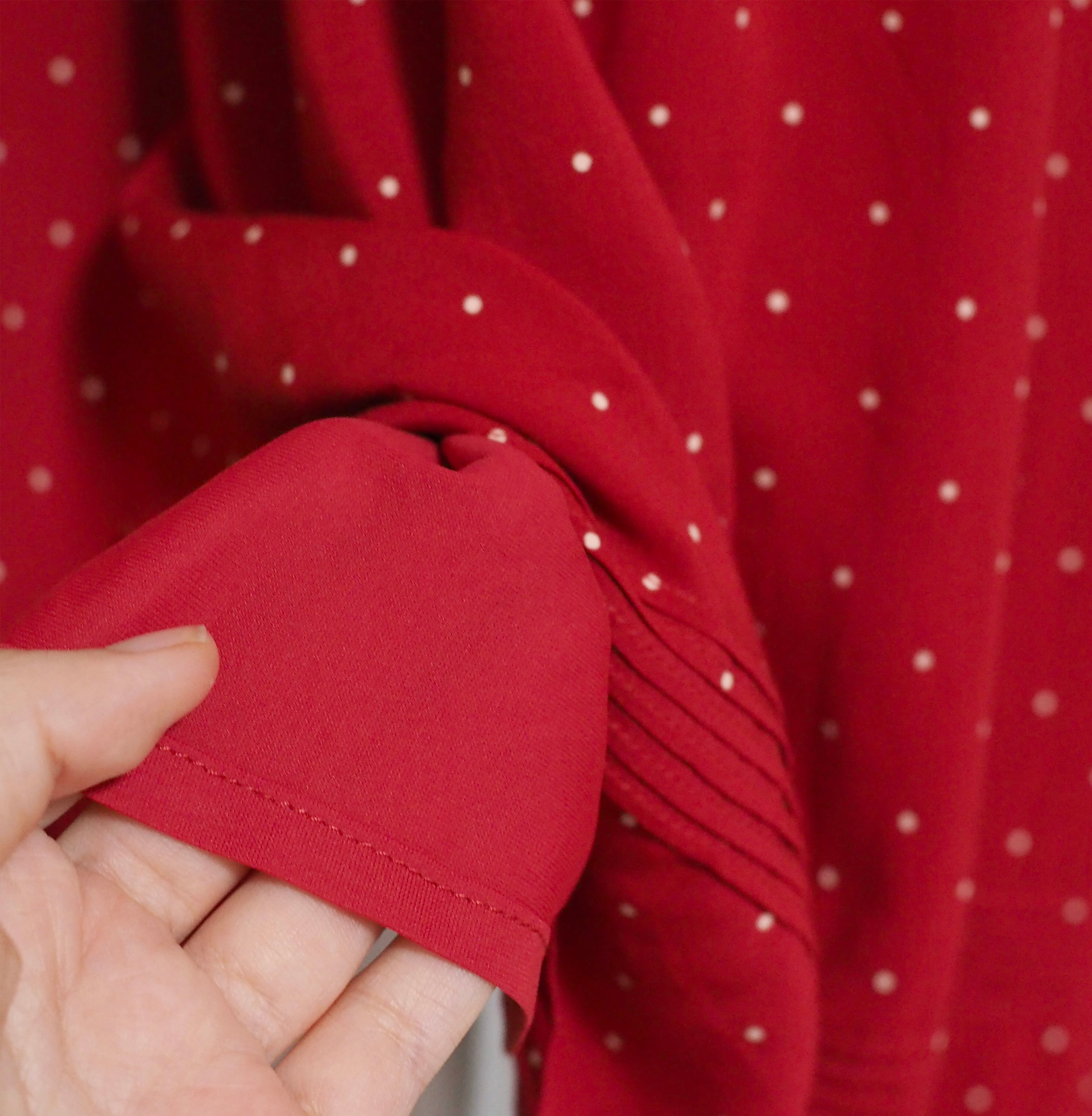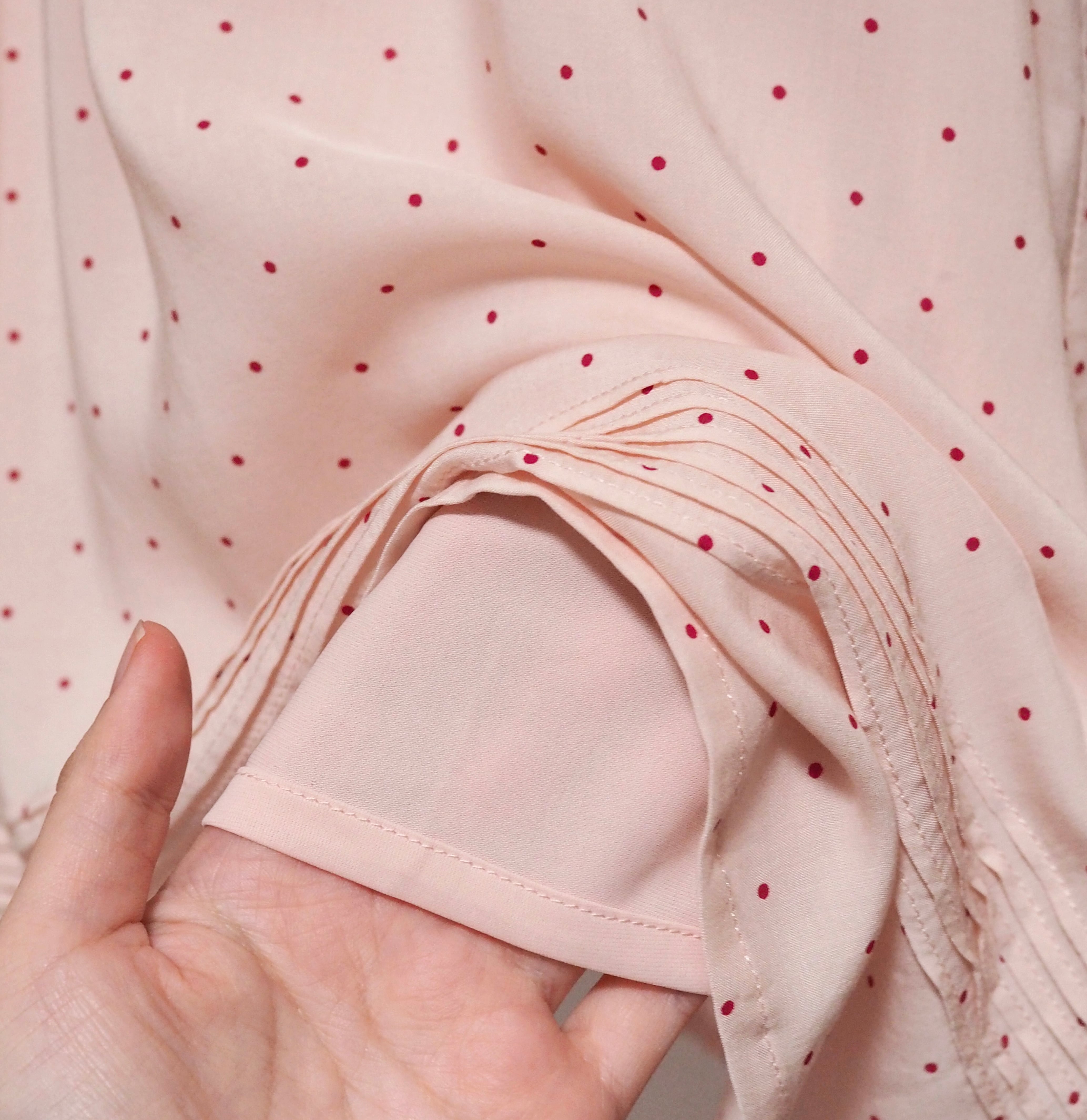 プリントのドットと同じ色の生地。
